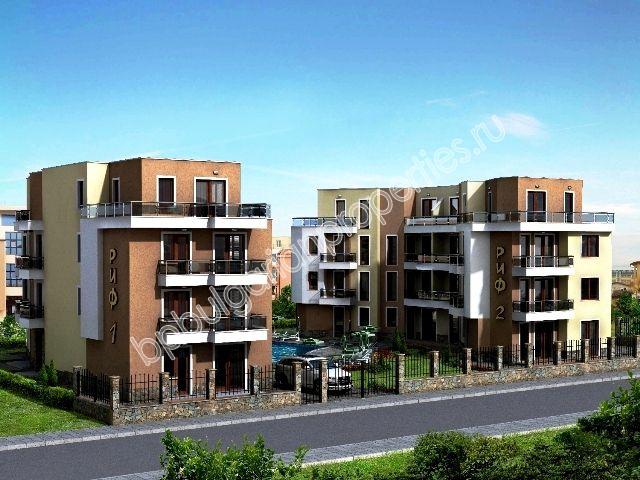 „РИФ” – комплекс, состоящий из двух корпусов „РИФ 1” и „РИФ 2”, которые находятся на огражденной территории, с зелеными газонами, бассейном, детской площадкой и местами для парковки.