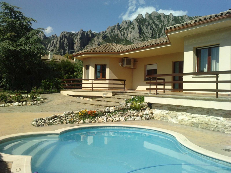 Chalet de una sola planta, en el parque Natural de Montserrat, con excelentes vistas a la montaña, grandes ventanales que ofrecen mucha iluminación natural en todas las habitaciones y baños.