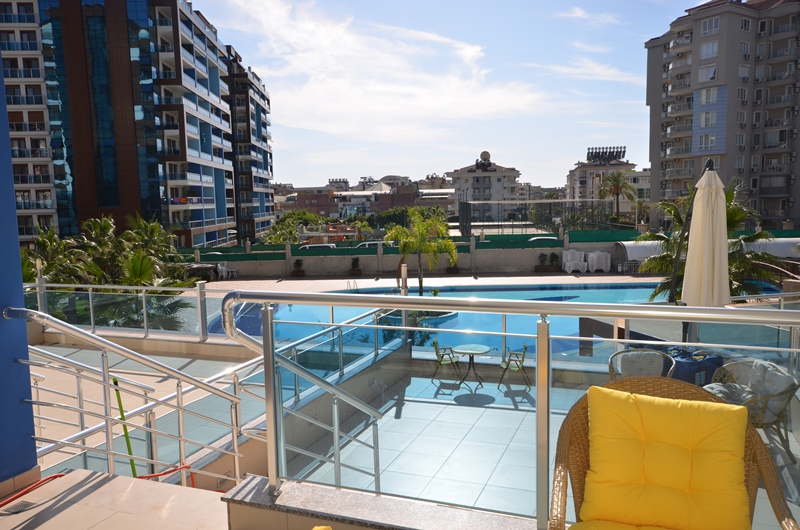 Квартира 3+1, на первом высоком этаже в блоке С, имеет огромную террасу в 20 кв.м. с южной стороны квартиры с видом на бассейн и внутреннюю территорию комплекса, и просторный балкон с выходом из спальни с северной стороны. В квартире собственником был сделан подогрев полов по всей квартире, установлены кондиционеры в каждой комнате, бытовая техника. В квартире 2 ванные комнаты в одной, в одной из которых установлено джакузи. Возможно покупка квартиры вместе с мебелью. На территории комплекса круглосуточная охрана, офис управляющего, салон красоты, фитнес и спа центры, зимний обогреваемый бассейн, 2 открытых огромных бассейна, детский бассейн, аквапарк, открытая и закрытая парковки, боулинг, ресторан, кафе, детская комната и детская игровая площадка, зона Play station, большой теннис и баскетбольная площадка, настольный теннис и бильярд, конференц зал и кинотеатр. Ежемесячное обслуживание квартиры 45 евро. В пешей доспупности находятся крупные торговые центры: Аланиум, Метро, Кипа и др. Расстояние до моря 600 метров.