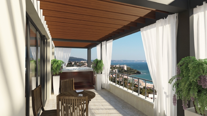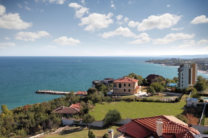Meerblick-Wohnungen in einem berühmten Wohnviertel neben Varna, 10 Minuten Fahrt vom Stadtzentrum, 300 m durch spezielle Sessellift und 1400 m über eine asphaltierte Straße zum Strand, 150 m von der nächsten Bushaltestelle . Alle Wohnungen aus dem Boden in die oberste Stock bieten eine herrliche Aussicht auf das Meer. Die Wohnanlage besteht aus 31 Einheiten und mit Blick direkt auf das Meer, direkt über den feinen Sandstränden. Die Einheiten zusammen aus Wohnzimmer mit offener Küche und Esszimmer, ein oder zwei Schlafzimmer, Flur, Terrasse in allen Räumen, Bad und WC. Das milde Klima von Varna macht diese Häuser sehr gut geeignet für den ganzjährigen oder saisonalen Einsatz. Die Wohnungen sind mit Bulgarischen Staates Standart abgeschlossen (ohne Bodenbeläge). Funktionen und Einrichtungen: Sauna, Grillecke, Lift, Schwimmbad, Internet, Telefon, Kabel-TV, usw. Wartung ist. Es umfasst 24 Sicherheit, CCTV, allgemeine Wartung und Reinigung der öffentlichen Bereiche des Gebäudes.