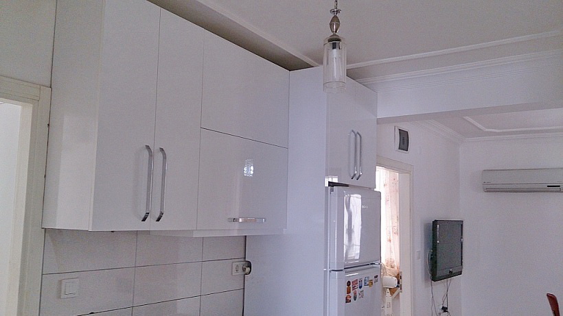 В квартире кухня совмещена с салоном, установлен кухонный гарнитур, газовая и духовая печь, вытяжка, мягкая мебель, обеденный стол, телевизор, во всех комнатах кондиционеры, в комнатах спальные гарнитуры, в ванной душ кабина, бойлер для нагрева воды, на окнах роль ставни и решетки, внешние стены выложены специальным камнем. Квартира сухая и теплая. Аренда может приносит доход от аренду в сезон до 1000 долл, в зимний период 800 лир.