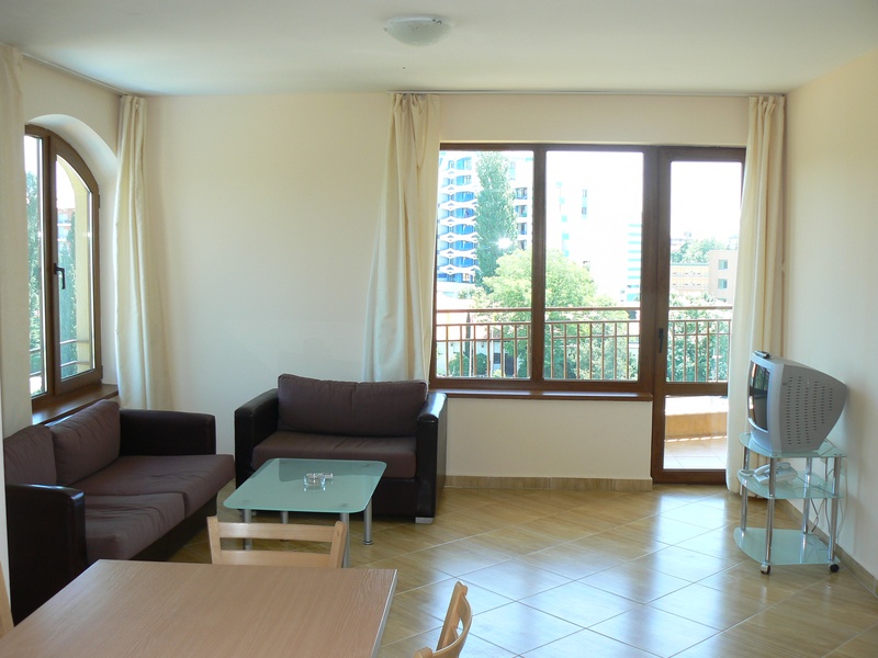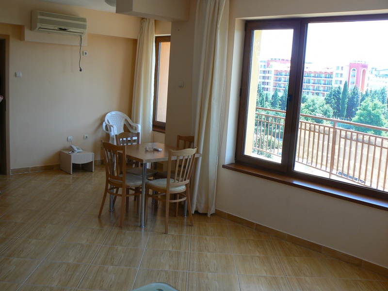 Акция !!! Цена снижена !!! Двухкомнатный апартамент в прекрасном комплексе. Апартамент полностью меблирован и расположен на 4-ом жилищном этаже. Из апартамента открывается прекрасный вид на курорт Солнечный Берег. В комплексе есть бассейн, парковка, круглогодичная охрана, возможность проживания круглый год. Расположен он в центральной части Солнечного Берега, в шаговой доступности от всей инфраструктуры. Продуктовый магазин за углом, автобусная остановка, автовокзал. Море в 300 метрах. Поддержка в год: 6.75 евро/m2