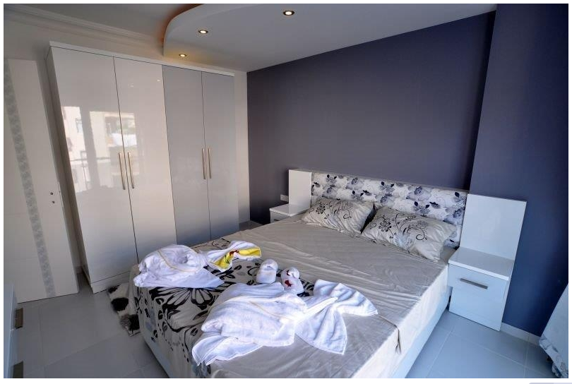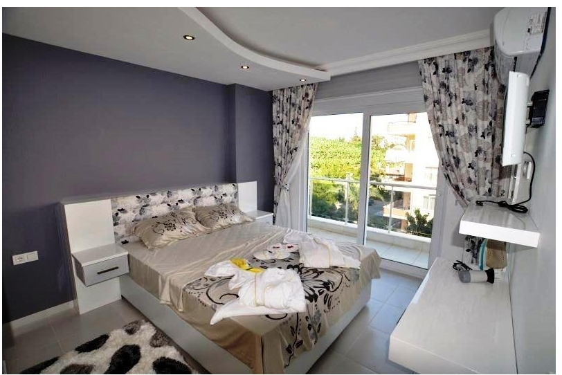 Spacious 2 bedroom apartment (56m2) is located 9 km from the city center of Alanya, just 500 meters from the sea and a 55-minute drive from Antalya Airport.