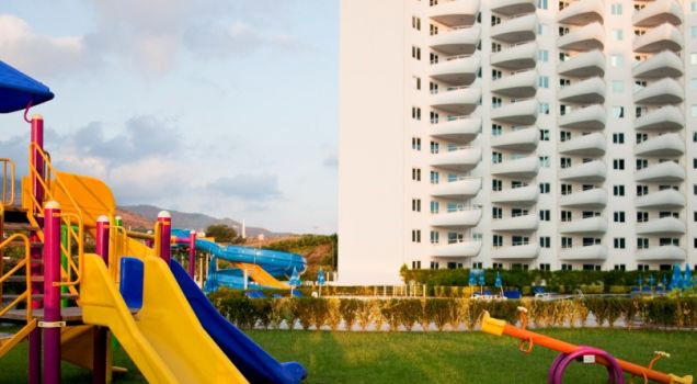Продается уютная просторная квартира 2+1, 113 кв.м. в комплексе с инфраструктурой отеля в центре района Махмутлар.
