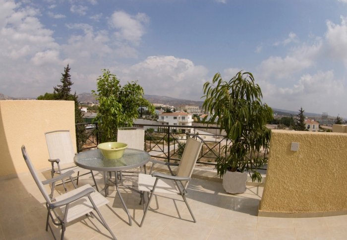 Квартира находится на 1-м этаже здания, у которого есть крытые парковочные места и большой коммунальный бассейн. Кухня и обеденная зона и гостиная открытой планировки. В спальне на этом уровне расположена просторная ванная комната. С веранды открывается прекрасный вид на бассейн и на горы. Мраморная лестница с этого уровня ведет на верхний этаж, где расположена спальня с ванной комнатой. Большая веранда из спальни с видом на море и горы. Цена включает в себя все светильники, шторы и мебель, и.т.д.