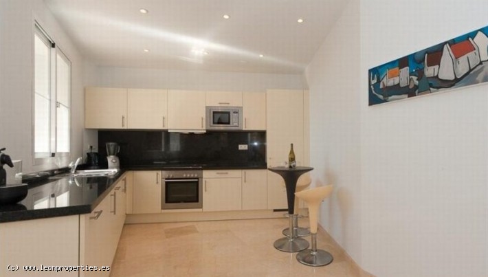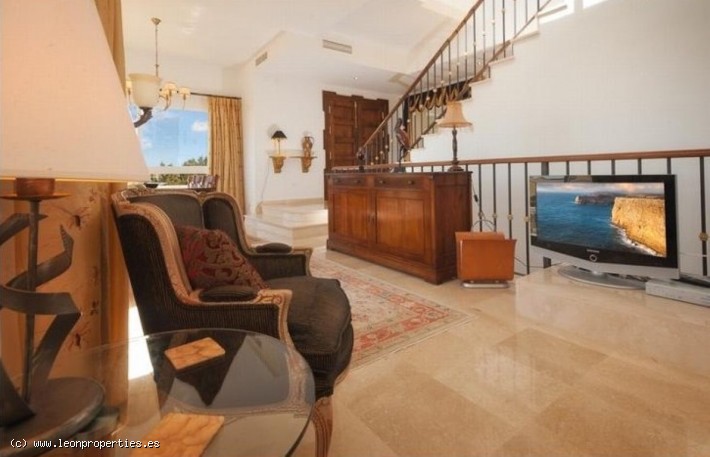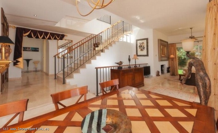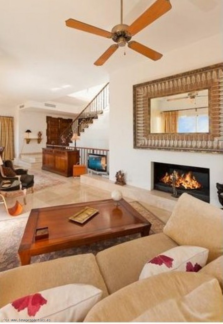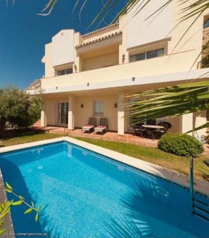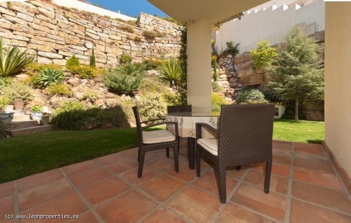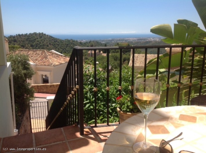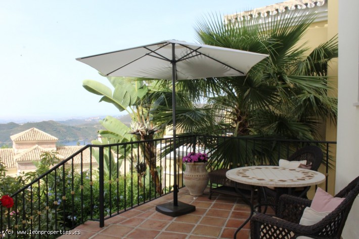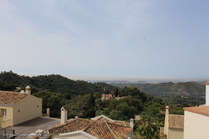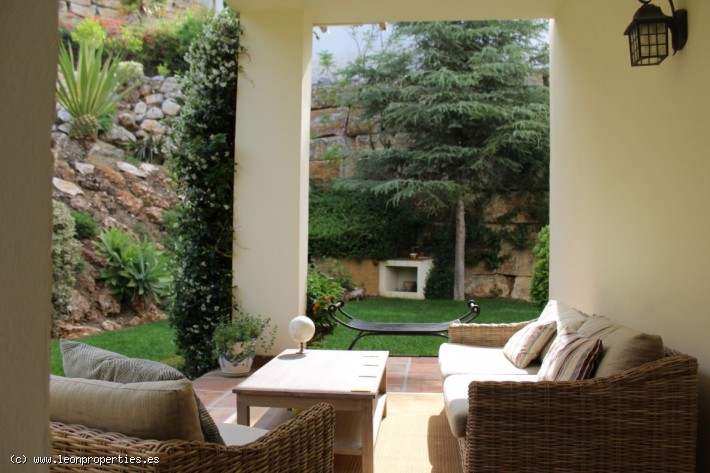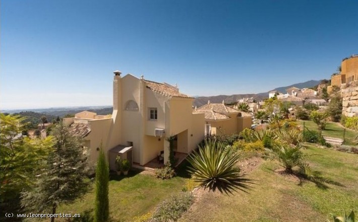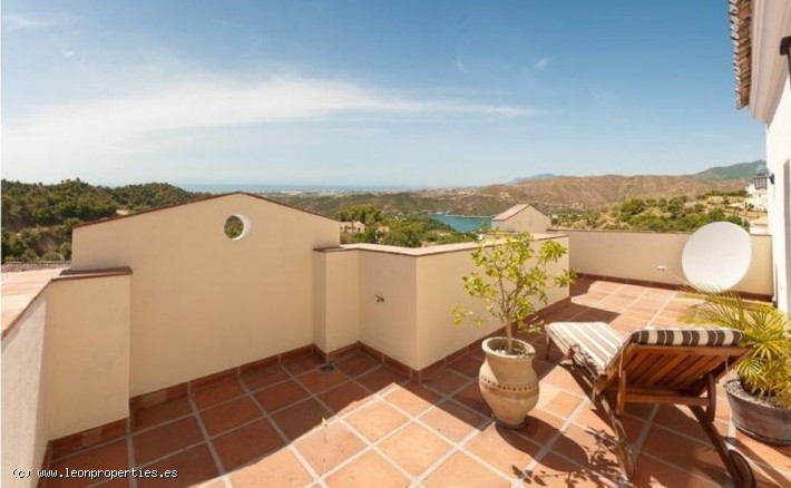 Lovely villa in a secure, gated community just 10 minutes' drive from the Puente Romano Hotel. The villa boasts superb panoramic views of the Mediterranean sea, Gibraltar and Africa, as well as of the Istan lake from almost every room in the house. Accomodation comprises, on the main level: entrance terrace with seating area and fantastic views; bright living/dining room with fireplace; modern and practical kitchen, and access to a lovely covered terrace and the garden; guest toilet. On the top level: large, bright master bedroom with en-suite bathroom and dressing room, tall ceilings and a large private terrace from where the views can be enjoyed at their best. On the lower level: two further bedrooms sharing a bathroom; the lower level bedrooms open up to a large covered terrace and garden with private pool.