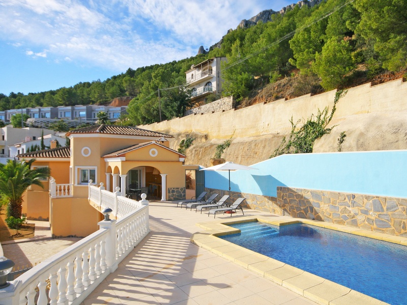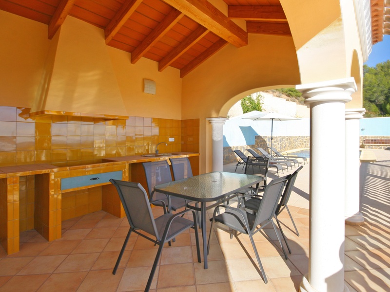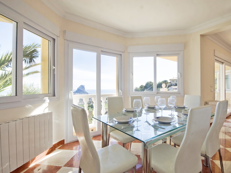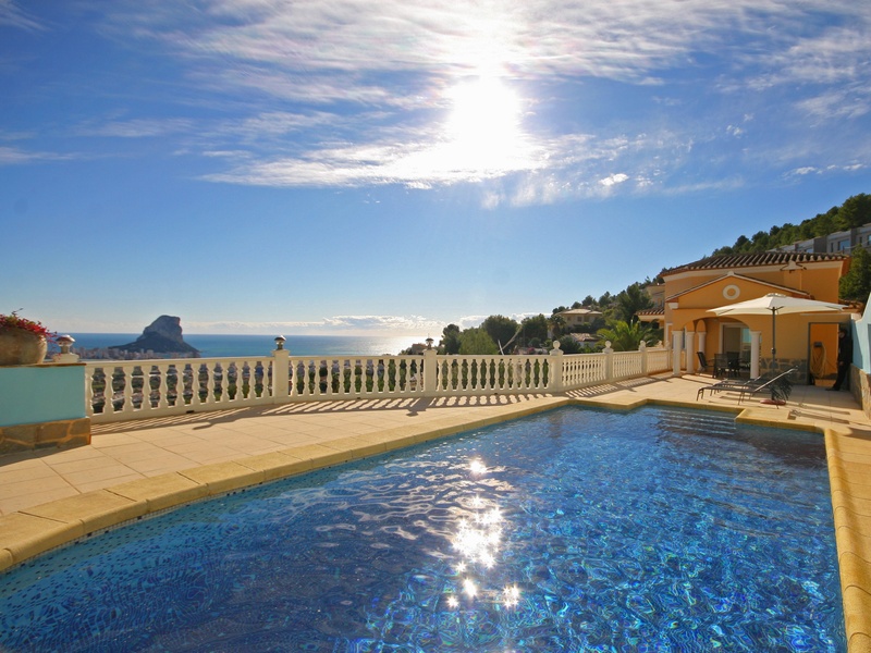 Роскошная вилла в Кальпе с видом на море. Расположена примерно 3 км от пляжа и центра города Кальпе. В очень тихом и солнечном месте. Участок 1.200 m2 Жилая площадь: 220 m2 Эта вилла на 2 этажа с лестницей внутри. Верхний этаж: 3 спальни, 2 ванные комнаты (одна в люкс с ванной и одна с душем), гостевой туалет, большая гостиная-столовая с открытой кухней полностью оборудованы и с керамической плиткой, терраса и крытое барбекю с летней кухней. Первый этаж: большая комната заготовка приблизительно. 160 m² (возможно достроить еще 2 спальни) и гараж на 3-4 машины. Кроме того, эта вилла имеет бассейн 10х5 м, центральное отопление, встроенные шкафы и сад. Участок полностью огорожен.