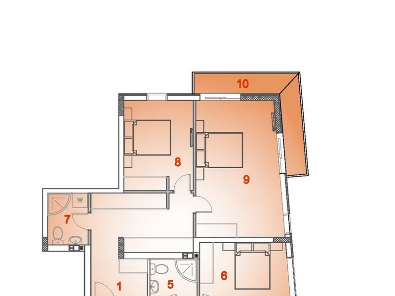 Квартира на 6 этаже семиэтажного дома с лифтом, общей площадью 96 м2, с 3 спальными и 2 ванными (душевая кабина, бойлер, унитаз, раковина, подключения для стиральной машины) комнатами, гостиной с камином и кухонной зоной (электроплита, вытяжка, духовой шкаф, холодильник), 2 террасами, с которых открывается изумительный вид на море.