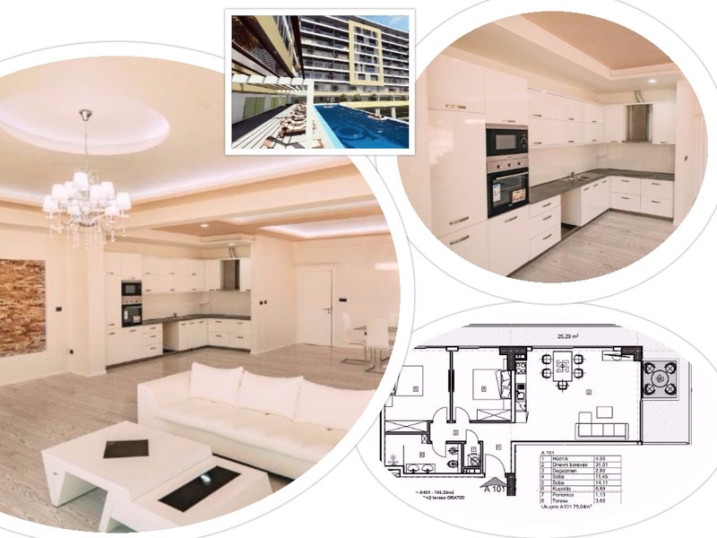 Apartment with direct sea view and the castle’s of old town.Apartment with two bedrooms and two bathrooms, total area of 85.65 sq.m + 3,42 m2 terrace with landscaping as a gift!