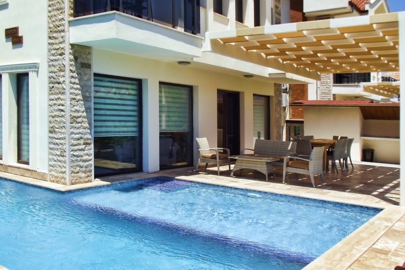 Dalaman, in the wonderful touristic town of Dalyan, visited every year by thousands of tourists, incredible investment opportunity!! Complex of four luxury Villas for sale, with total price of £ 650,000! 2100 m2 of land, private pool, garden, top quality and extremely elegant materials, 5 bedrooms for each villa, each of them with private bathroom; in short a perfect opportunity for all those who aspire to a life of luxury and comfort and who want to invest in a structure with unparalleled rental potential!