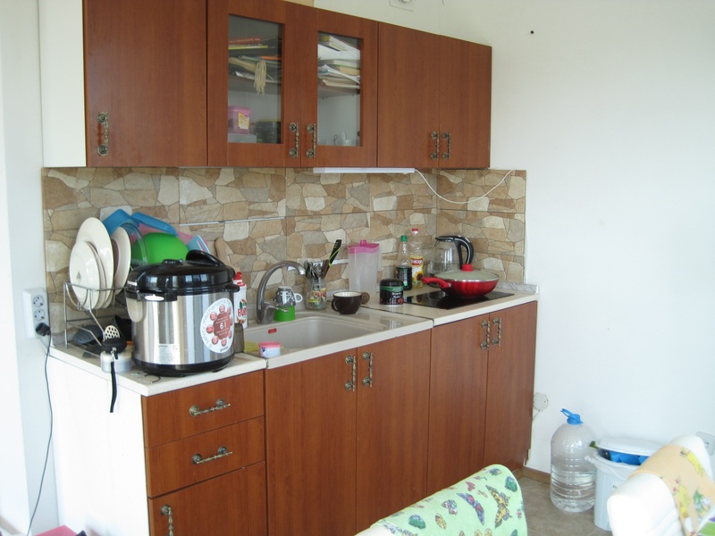 продает очень большую светлую однокомнатную квартиру,подходящую для постоянного проживания, в жилом доме "Бульвар" в центре Солнечного Берега в 700 м от пляжа. Квартира с низкой таксой за обслуживание - всего 150 евро в год. При этом есть бассейн и парковка. Лифт в здании работает круглый год. в Здании находятся офисы, строительный магазин (работающие круглый год), а также кафе быстрого питания. Площадь квартиры - 58 кв. м, этаж 3. Два балкона: маленький к кухне, большой к гостиной. Отличное состояние квартиры, мебель, техника, два раскладных дивана, кухня с собственным окно. Акт 16.