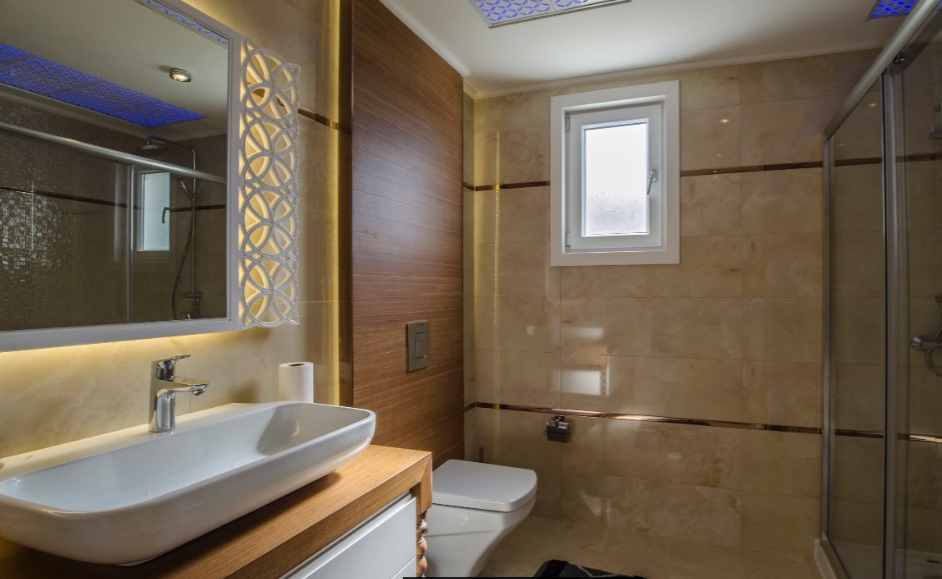 • В ванных комнатах полный комплект сантехники, встроенная мебель и настенное зеркало