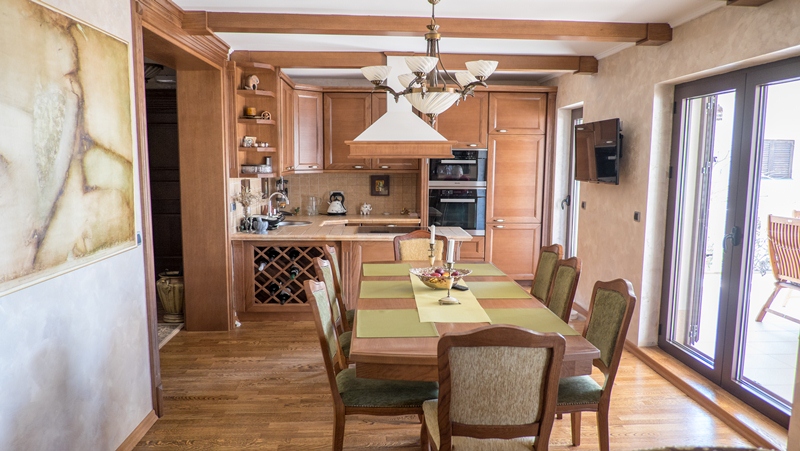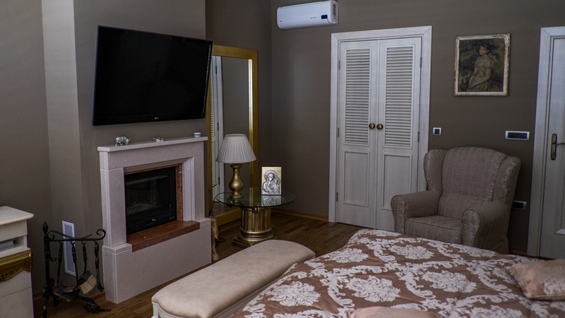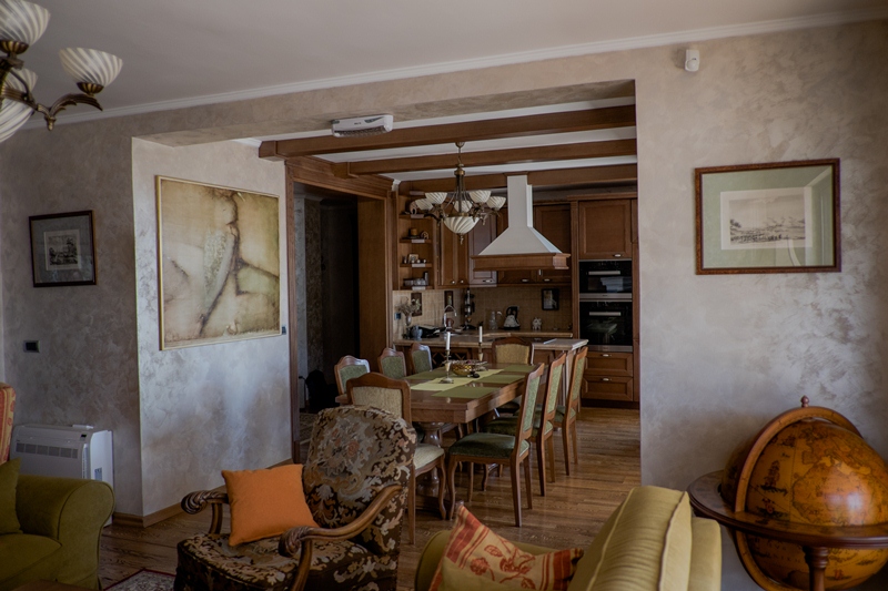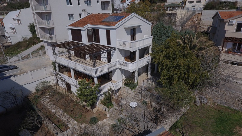 You’ll love this charming 4-storey villa with spectacular sea view in Lazi Area, Budva. This 4 bedroom, 5 bathroom villa with 4 parking spaces will give you 400m2 of generous space to move about. There is a fitness room for pleasant work-out, 2 offices to work in a quiet atmosphere, 2 fireplaces to spend chilly winter evenings, a beautiful garden to have barbeque with friends and a spacious guest house with a separate entrance, so your guests can enjoy their privacy. It’s located approximately 1,5 km from the sea (20 minutes walk). The villa was fully renovated in 2013 and is a pearl in a friendly community with several shops nearby. Some pieces of furniture are from famous Italian manufacturers, but the majority is customized to meet the needs of the space.