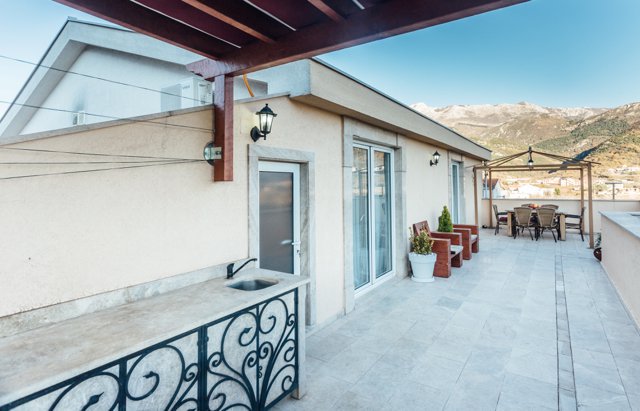 A 2-bedroom apartment is located in a quiet village Lastva Grbaljska in the suburbs of Budva. It’s about 5 km to Budva and 3 km to the nearest and the most famous beach Jaz.
