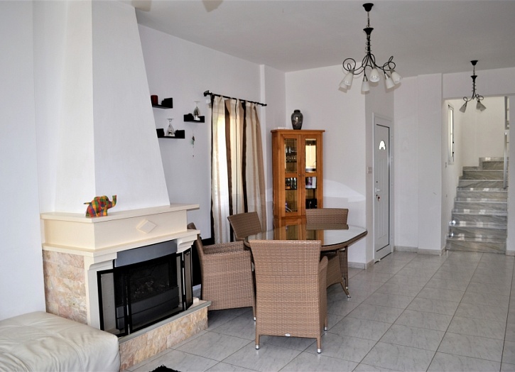 На первом этаже дома расположены: просторная полностью укомплектованная кухня, большая гостиная-столовая с камином, выходящая на террасу и в сад к бассейну, гостевой туалет.