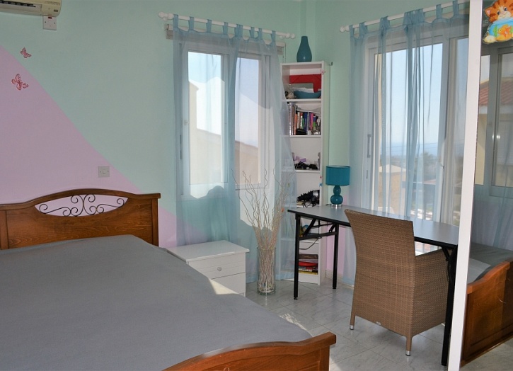На втором этаже – 3 спальни (каждая со своей ванной комнатой), небольшая гостиная и большие веранды с видом на море и горы.