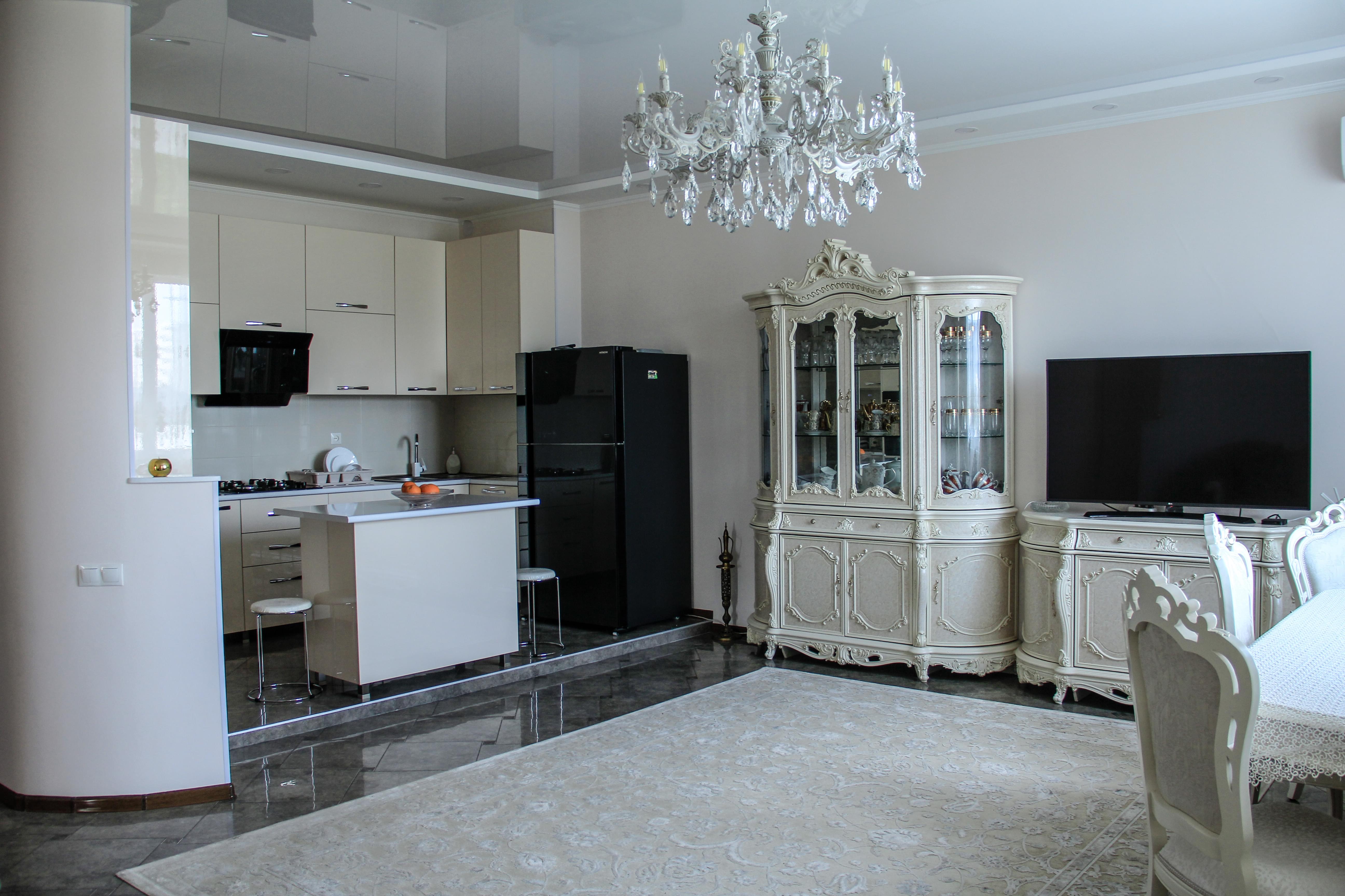 Продается современная меблированная четырех комнатная квартира, студио плюс три спальни ,площадью 128 кв. м ,большая ванна, высокие потолки,современное системы отопления и кондиционирования и это все с прекрасным видом на Тбилиси.Кухня с встроенной бытовой техникой, люстры, стиральная машина В 5 минутах ходьбы крупные торговые центры и магазины, школа и детский сад. 4 часа езды на автомобиле до моря и 2 часа езды до горно-лыжного курорта гудаури