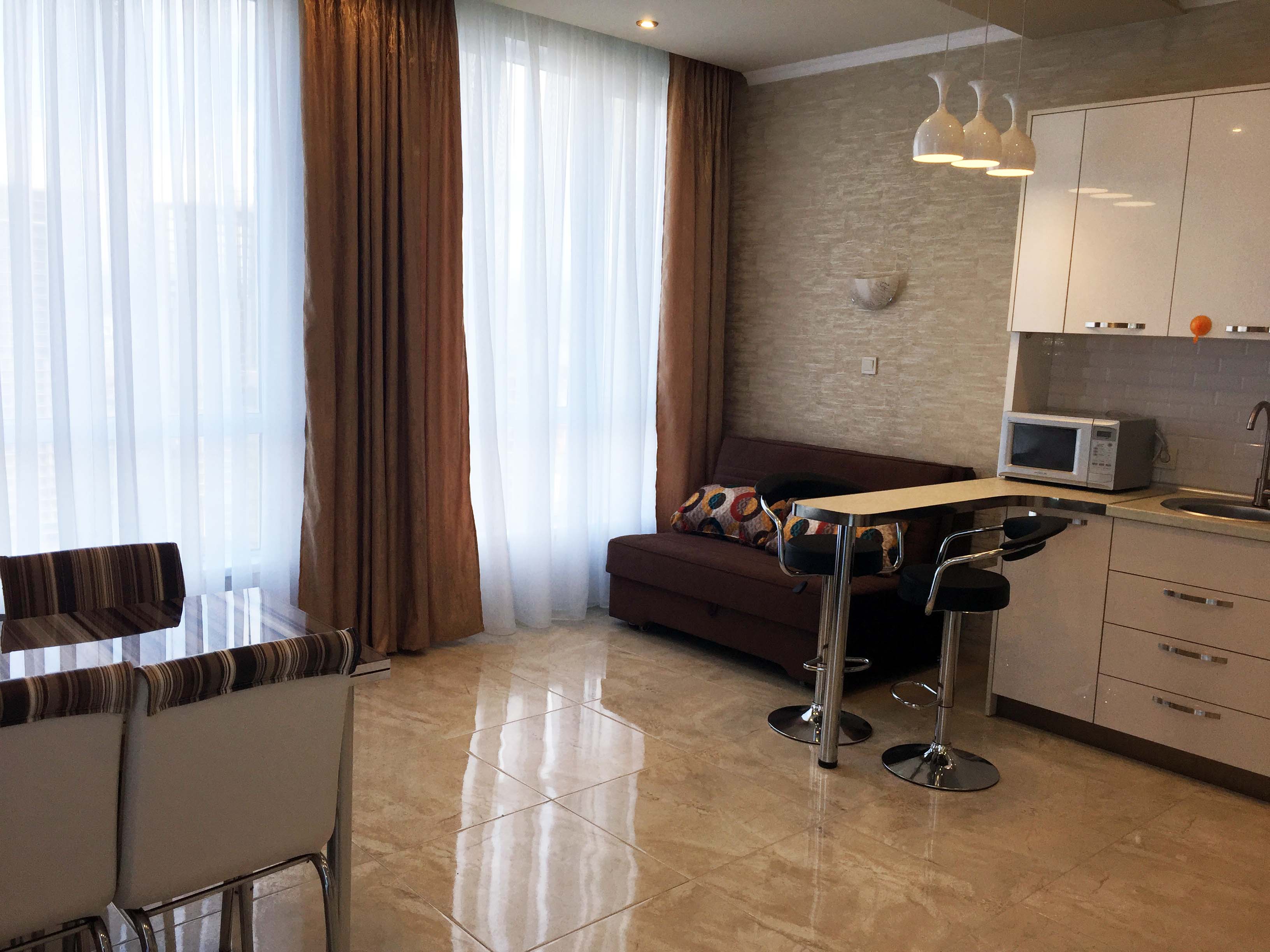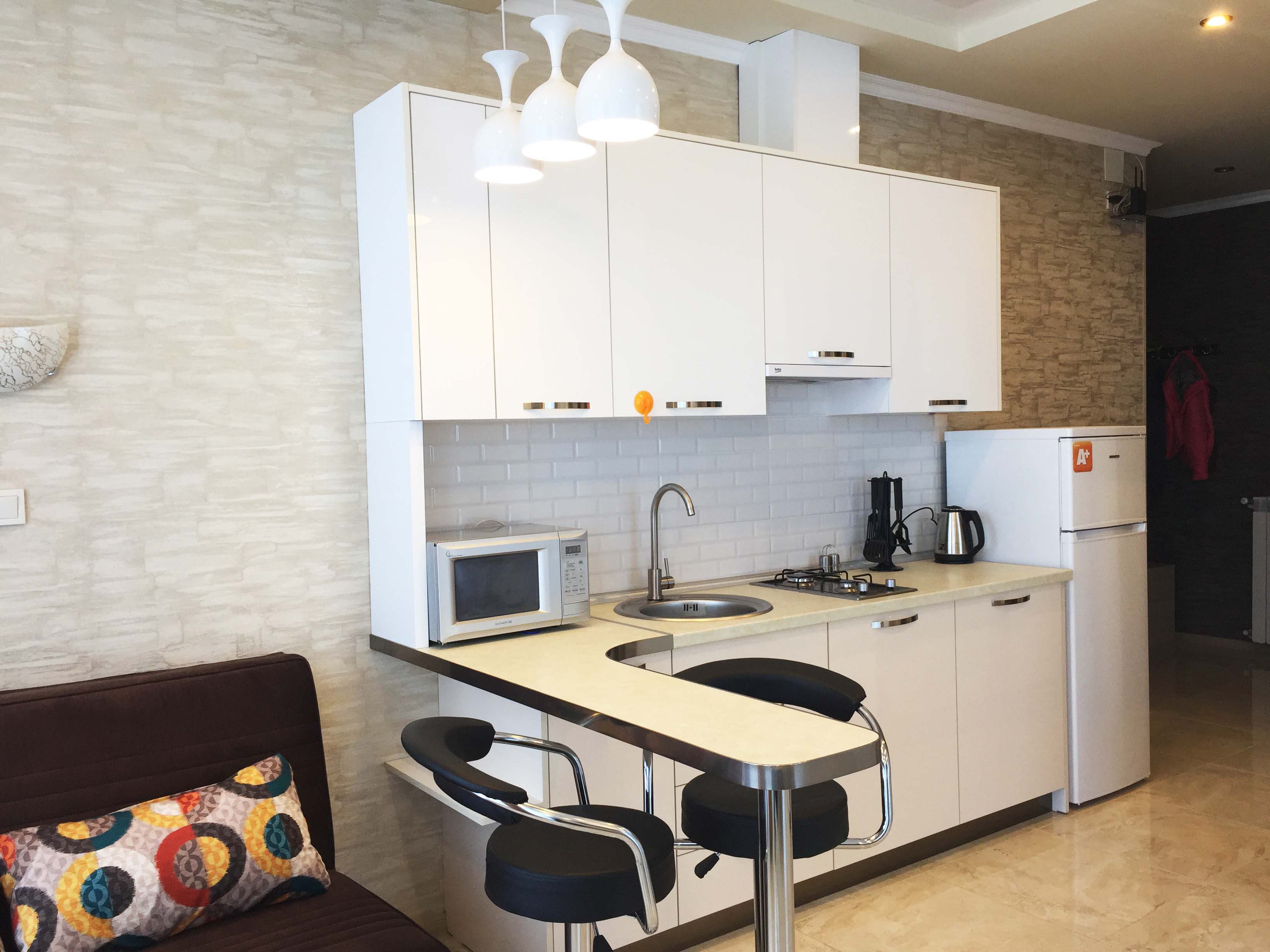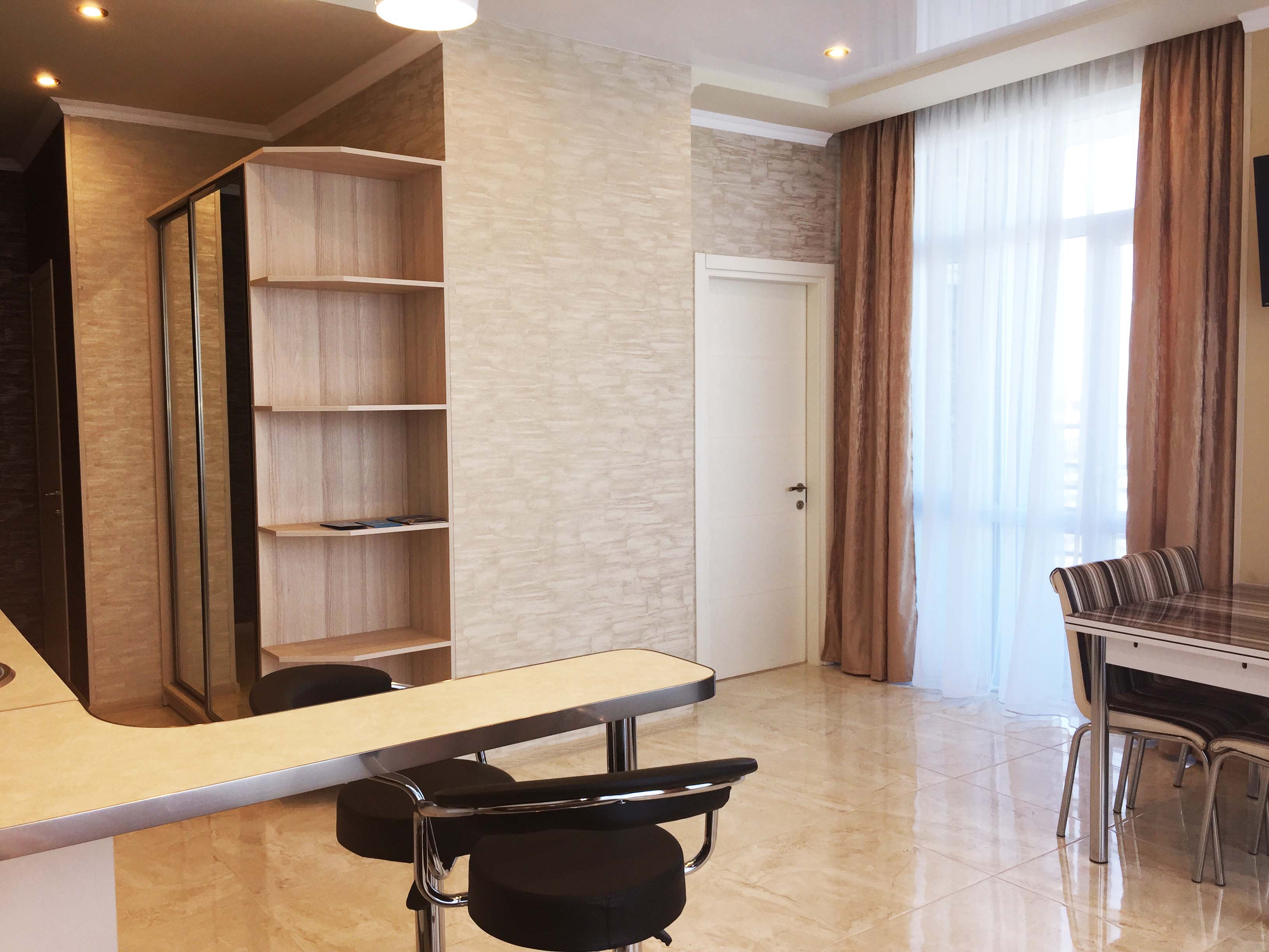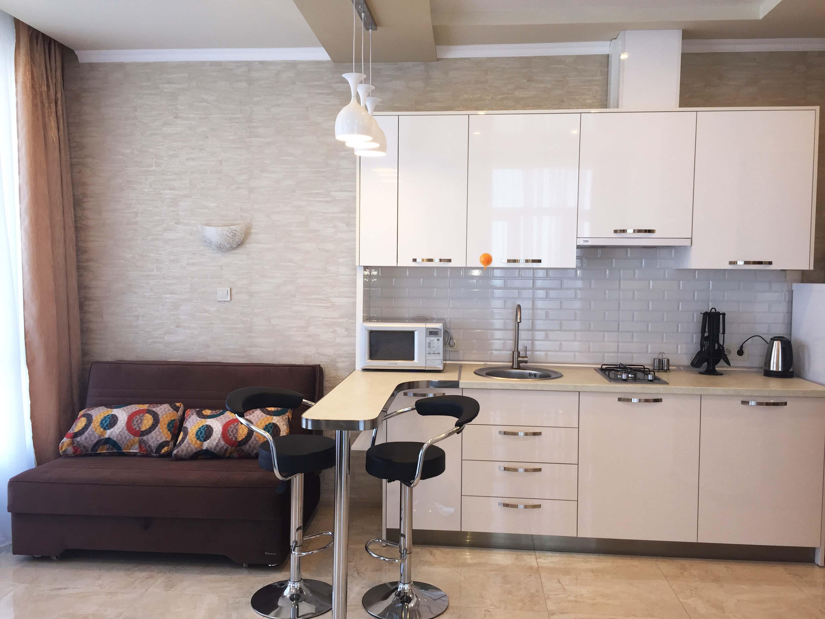 Die Wohnung besteht aus einer Studio-Halle, einem Schlafzimmer, einem Badezimmer und einem Flur. Ausgestattet mit allen notwendigen Möbeln und Geräten, Wi-Fi, Zähler. Monatliche Wartungsgebühr 30 GEL (12 USD)