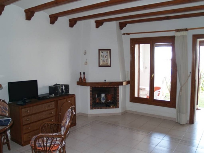 Уютная маленькая квартира близко к морю, с красивым садом, бассейном и собственной террасой. Имеется одна спальная комната, ванная комната, открытого плана кухня, гостиная -столовая и камин.