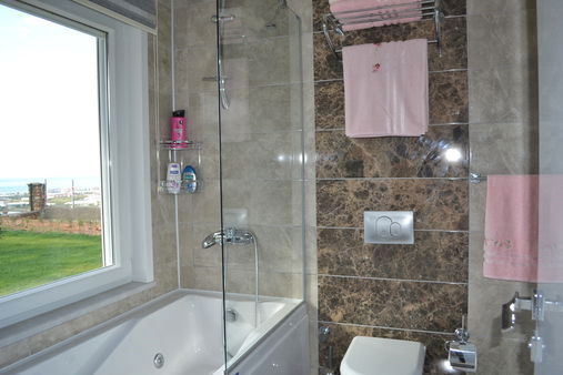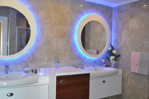 •В ванных комнатах полный комплект сантехники, встроенная мебель и настенное зеркало