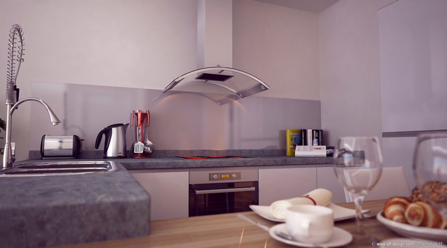 * МДФ кухня с гранитной столешницей, холодильник, духовка, плита, вытяжка, стиральная машина