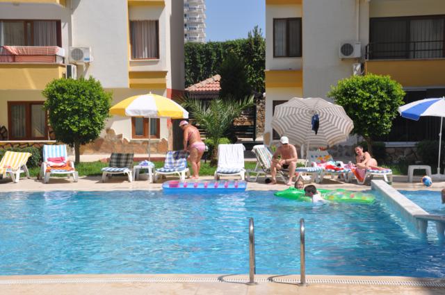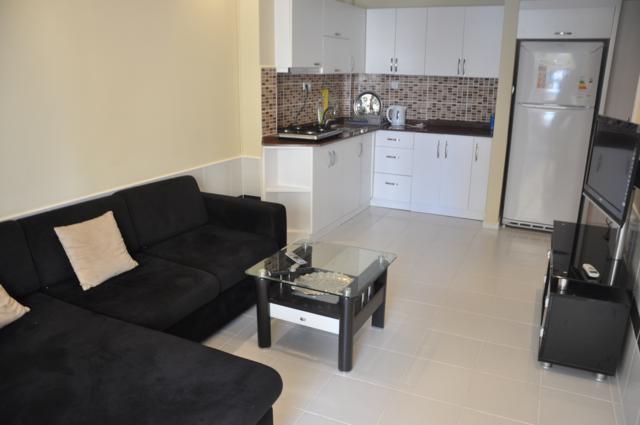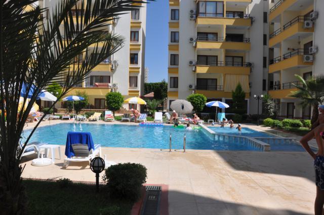 Квартира с одной спальней комнатой находится на входном этаже, в комплексе с бассейном, в 250 м. от моря, балкон выходит прямо на бассейн. Квартира площадью 55 кв.м. полностью укомплектована мебелью, оснащена кухонной бытовой техникой. До центра Махмутлара 50 м.