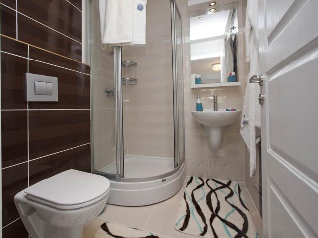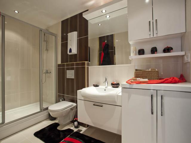 •В ванных комнатах полный комплект сантехники, встроенная мебель и настенное зеркало
