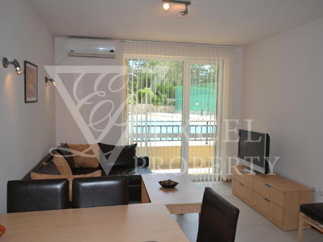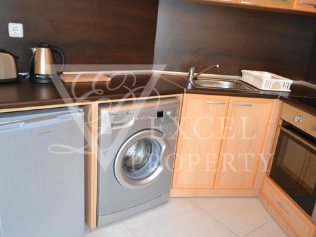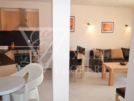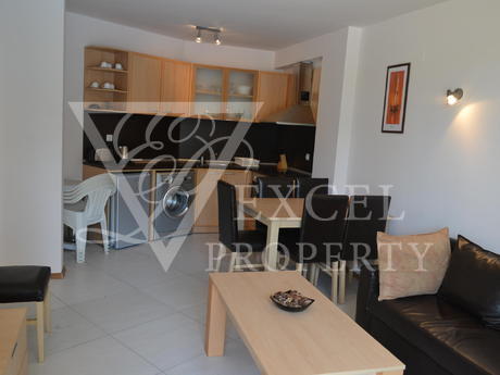 Команда Эксель Недвижимость предлагает вам прекрасную возможность для мудрых инвестиций в Солнечном береге в комплекс Сани Бийч Хилс. Квартира на первом этаже с общей площадью 81 квадратных метров, имеет два балкона, один с видом на один из бассейнов, пригодных для солнечных ванн. Квартира состоит из прихожей, двух спален, ванной комнаты, два балкона и гостиной с кухней. Есть большой раскладной диван с журнальным столиком и плазменным телевизором против него, обеденный стол с шестью стульями и мини-кухней. Существует полный пакет электроприборов со встроенной духовкой, плитой с вытяжкой, холодильником и стиральной машиной. В одной из спален есть двуспальная кровать с прикроватными тумбочками, шкаф и туалетный столик. Оттуда есть доступ в другую меньшую террасу, которую является приятным и затененных в течение дня. Во второй спальне есть две односпальные кровати с прикроватными тумбочками и гардеробом, снова с выходом на большую террасу. Ванная комната полностью оборудована всем необходимым, плитки находятся в хорошем ярким цветом, есть бойлер и ванна. Есть три кондиционеры в квартире. Комплекс находится в очень хорошем состоянии и находится в отличном состоянии. Она идеально подходит для проведения летних каникул там и арендную плату.