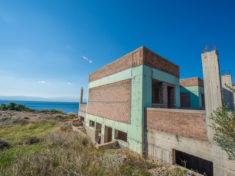 Ein Grundstück mit einem teilweise gebautes Haus in der Stadt Loutraki, Griechenland