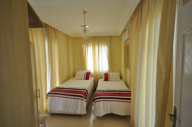 In villas are 2 baths, furnished, air conditioning, parking, garden, terrace, pool 1 on both the villa, beautiful views of the sea and mountains, to Alanya center 15 kms, to the airport Gazipasa 20 minutes.
