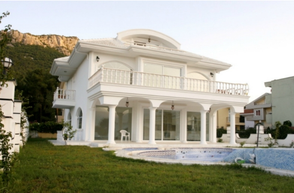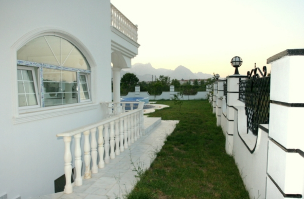 For sale luxury villa in Kemer just 300 meters from the sea and beaches. Detached villa with 3 floors with a fenced yard, a swimming pool, a waterfall in a swimming pool, children's pool, jacuzzi and 3 piece "Volcano Fountain", ground and underground parking, security cameras around the perimeter alarm system connected directly with the police.