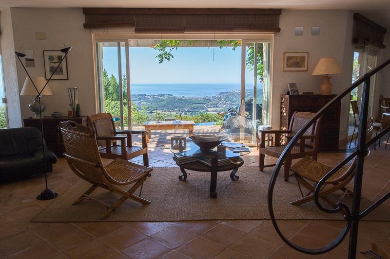 The living of 60 m2 has access to the 3 terraces and wonderful view on the sea over the pool, in the garden you have a SPA made of real stones, a nice swimming pool with security system.