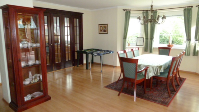 Предлагаю к продажи 6-комнатный эксклюзивный семейный жилой дом, находящийся в тихом районе особняков с зеленью на участке, которая обеспечивает соответственную приватную обстановку и отгораживает от близкой застройки домов. Первый этаж дома устроен на базе открытого проживания – соединенного задвижной дверью – соединением кухонной части с частью столовой и с помещением гостинной и плавный переход в зимний сад и на перекрытую летнюю террасу. Составной частью первого этажа является также комната пригодная как рабочий кабинет, или гостинная комната, и ванная с туалетом. Первый этаж составляют три комнаты, каждая имеет отдельный гардероб а также балкон, и в коридоре находится гардероб общего пользования. В распоряжении имеется также большая общая ванная с двойным умывальником, с угловой ванной и туалетом. Чердачное помещение создано крупным кондиционированным помещением, пригодным для рабочего кабинета, гостинной комнаты, или для общего детского помещения предназначенного для детских игр и развлечений. Парковка на участке предоставляется в закрытом месте для парковки для двоих машин, с закрытым пространством для вещей, которое является составной частью дома.