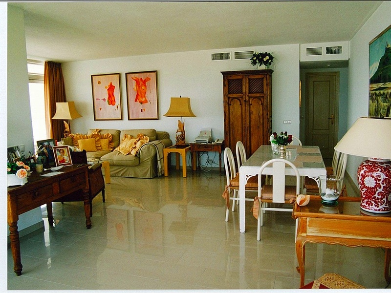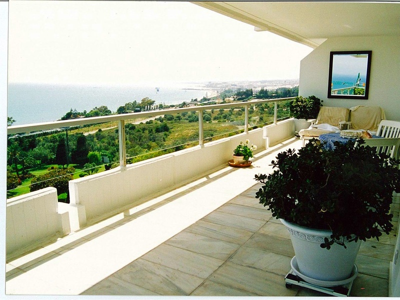 120 qm Wohnung möbliert Meerblick bis Gibraltar Nähe Golfplatz Los Monteros Nähe Playa del Pinillo - Marbella Wohnungsaufteilung: 1Schlafzimmer 1x großes Wohnzimmer mit offenem Nebenraum 1x Bad 1x WC 1x Küche 1x großer Balkon Garage Tennisplatz Grill im Garten 2x Pool 3x Aufzüge 2xPortier und Gärtner