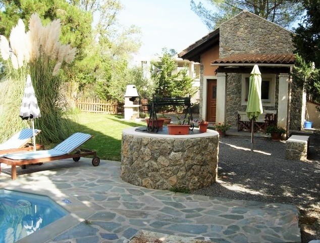 На территории, также есть небольшой коттедж для гостей. Коттедж включает гостиную с кухней, спальную комнату, ванную комнату, сад, зону барбекю и бассейн.
