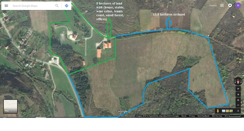 Zu verkaufen ein Luxus-Herrenhaus in Fruska Gora Grat, isoliert Rücken im Gebiet der Autonomen Provinz Vojvodina und Serbien, Vukovar-Srijem in Kroatien, in der historischen und geographischen Region Srem. Die außergewöhnliche Lage des Hauses, eine halbe Stunde von Belgrad, der Hauptstadt und 10 Minuten von der zweitgrößten Stadt und die Lage der regionalen Zentrale von Gazprom in Novi Sad. Das Gehöft besteht aus einem Haus von 540 m2, darunter 6 Schlafzimmer, 5 Bäder, Sauna, Fitnessraum, ein Billardzimmer, 3 Garage, 3 Terrassen, Überwachung, Asphalt und Beleuchtung im ganzen Anwesen, Teich, Tennisplatz, 40 m langen unterirdischen Weinkeller, Stallungen, plus ca. 1.500 m2 Grundindustrieräume (Büros, Lagerung, etc.) mit umzäunten Garten von 5 Hektar;. Das Anwesen ist ein Obstgarten 13 und einen halben Morgen (Pflaume, Birne, Quitte) mit geschützter geografischer Herkunft. Die gesamte Anlage ist sicher und gesund.