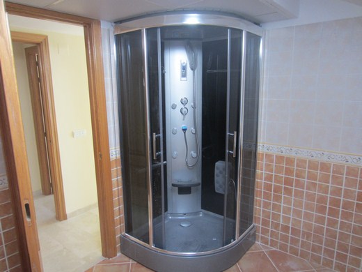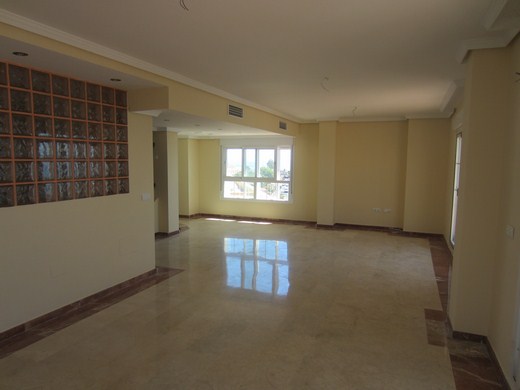 Sehr großes Wohnzimmer von 45m2 mit 4 großen Fenstern, Einbauleuchten und beige Marmorboden. Möglichkeit für ein drittes Schlafzimmer. Die Küche von 15m2 kann nch Ihrem Geschmack ausgestattet werden und wäre leicht verwandelbar in eine offene Küche. Es gibt eine Toilette und einen langen Flur auf dieser Etage.