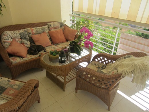Sehr große Wohnung in einem Luxus Golf Resort. Nach Osten hin mit einer 20m2 Terrasse auf mittlerer Etage mit Panorama- und Meerblick und nach dem Westen mit einem Patio von 60m2 inkl. Blumen und Grillplatz und ebenerdigem Zugang. Die Whg. ist renoviert, verfügt über 3 Schlafzimmer, 2 Badezimmer (eines davon en-suite), Eingangsbereich mit Einbauschränken , Diele, geräumiges Wohnzimmer mit Zugang zur Terrasse. Es hat einen Garageplatz und einen Abstellraum von 14m2. Extras: Video-Gegensprechanlage , doppelt verglaste Fenster, beiger Marmorboden , Faseroptik-Internet, 5 Einbauschränke. Das Resort verfügt über eine Rezeption und 24-Stunden-Überwachung sowie die Videoüberwachung in der gesamten Anlage mit Gärten und 4 Pools. Liegt am Torrequebrada Golf.