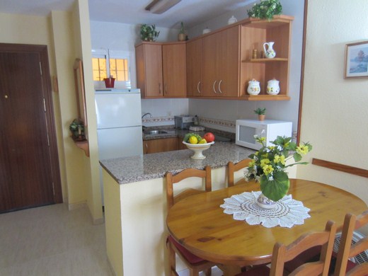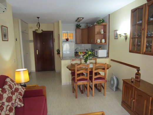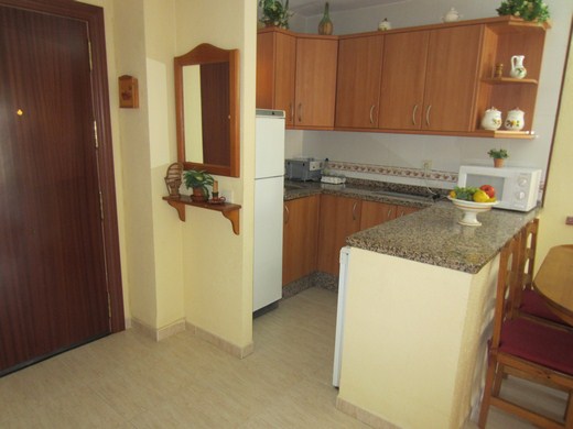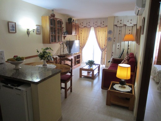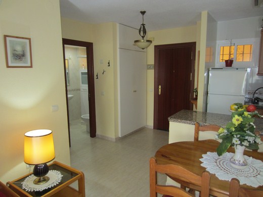 INVESTMENT / Ferienwohnung 1 Schlafzimmer. Voll renoviert und in rustikalen Stil möbliert , mit Doppelschlafcouch ausgestattet. Einbau-Kleiderschrank, Küche (alles elektrisch), perfekter Zustand, Sicherheitstür. Terrasse mit Panoramablick . Orientierung: Südwesten. Gemeinschaftsaussenparkplätze. 24-Stunden- Rezeption, riesige Garten- und Poolanlage mit Rutschen und Sommer-Bar. Gute Infrastruktur. 350m zum Strand. 150m vom botanischen Garten Parque La Paloma. Kaufoption für neuen Garagenplatz für 20.000 €