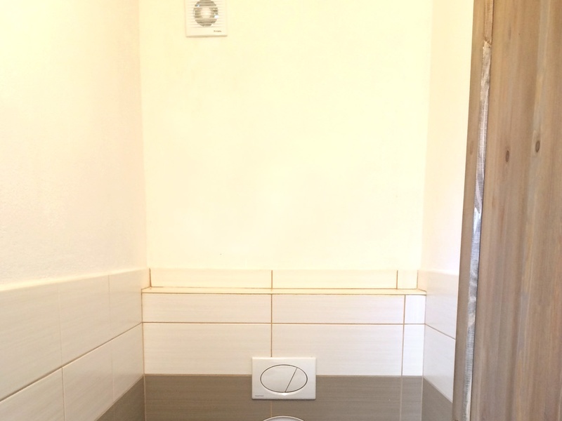 The entrance into the house is located on the south side from the yard. The first room is the kitchen with a complete preparation for kitchen furniture, including the connection for the air ventilation system, connections for water, gas and waste piping. One bedroom is on the right side (with the windows to the street), and the second bedroom is on the left (with windows to the yard). From the second bedroom you can enter another room, that has the preparation for a sauna, from which you enter the toilet and bathroom (shower, wall hung toilet system). In this rooms there are high quality german wall tiling and pavement. The sink is made by Villeroy – Boch + all bathroom faucets are new.