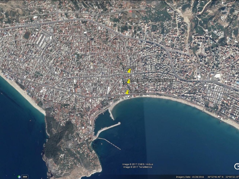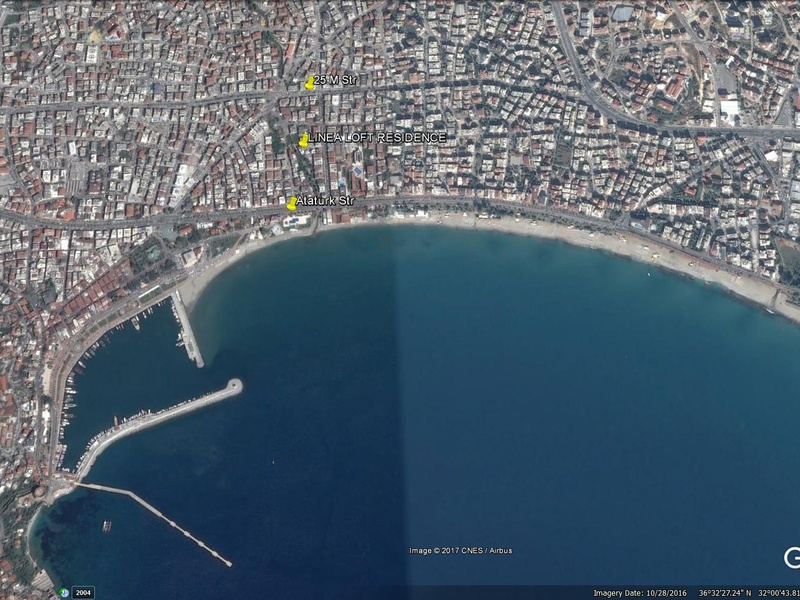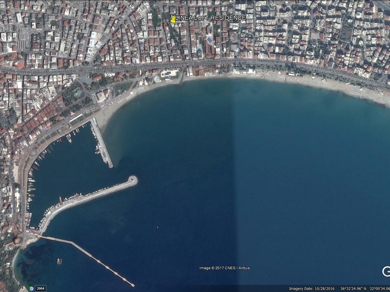 Linea Loft Wohnen - ist ein Boutique-Projekt in idealer Lage im Herzen der Stadt. Das Projekt ist nur 200 Meter vom Strand Keykubat entfernt und nur wenig Minuten zu Fuß vom Denkmal Atatürk.