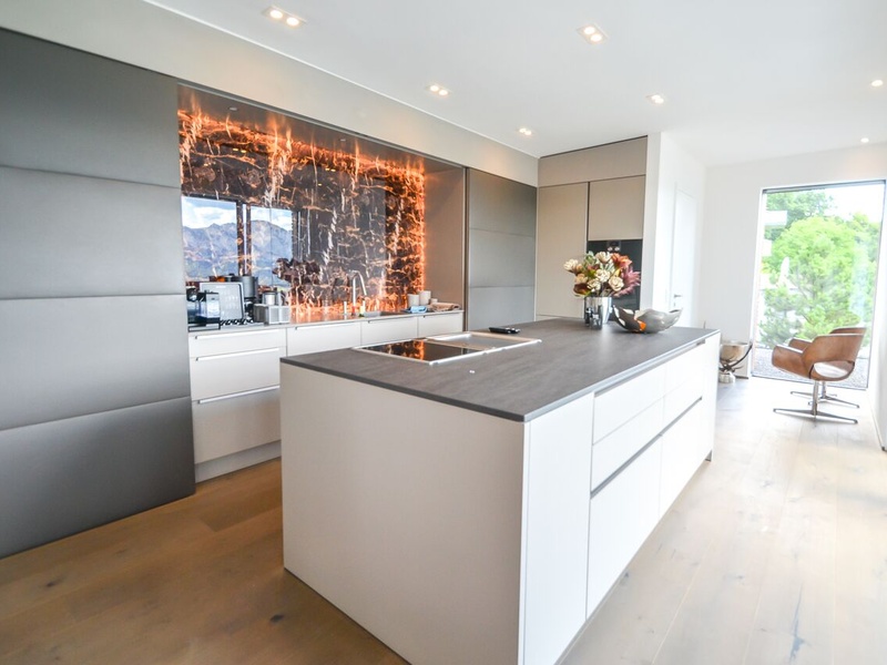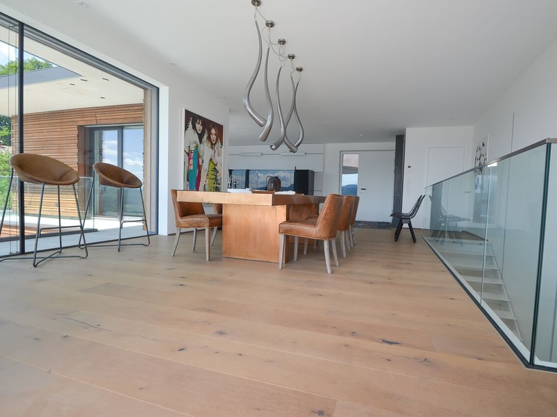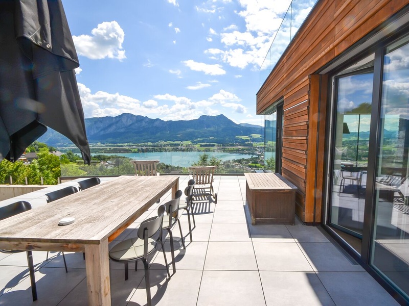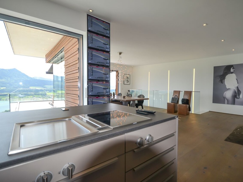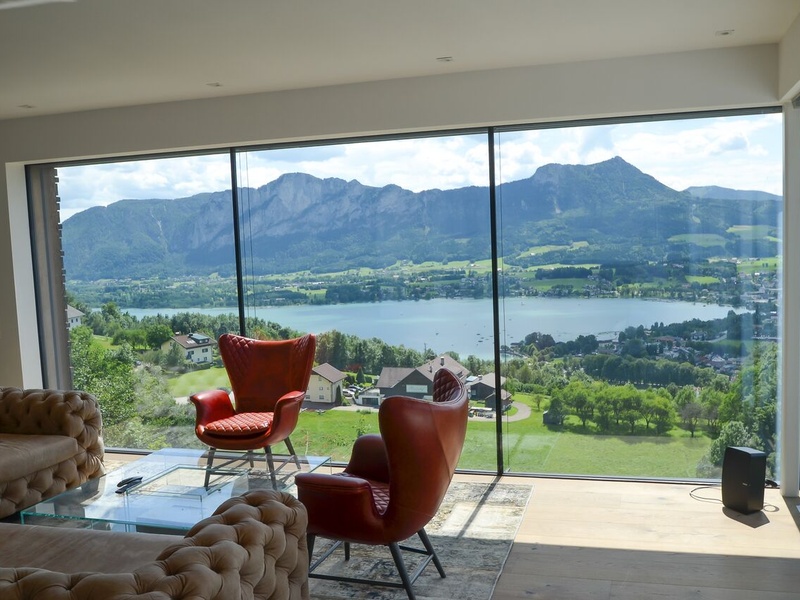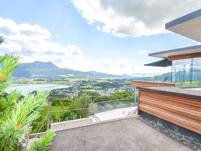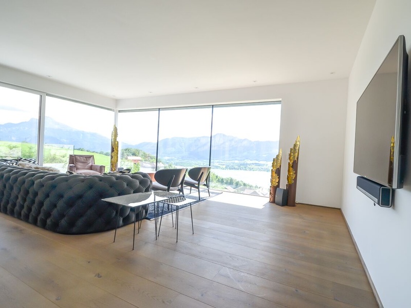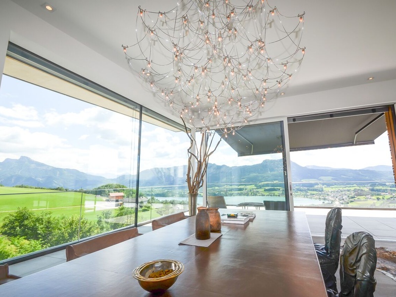 Das Haus für Mondseeberg liegt auf 1029 m über dem Meeresspiegel, am nordöstlichen Ufer des Mondsees in den Bergen des Salzkammergutes in Oberösterreich. Dieses neue Gebäude, das auf dem ursprünglichen Mondseeberg gebaut wurde, bietet Ihnen einen sauberen Luxus. Das Haus hat eine einzigartige große Sonnenterrasse mit eigenem, endlosen Schwimmbad. Wohnfläche: ca. 257,75 m². Die Fläche des Grundstücks: ca. 122,44 m². Das Haus wurde im Jahre 2016 gebaut: Fußbodenheizung, Personenlift, Tiefgarage, Schwimmbad, Klimaanlage, Gästetoilette, Garage, 2 Terrassen 2 (ca. 99 m²). Hochwertige Luxus-Materialien garantieren Ihnen Komfort. Die geschmackvoll eingerichtete Immobilie befindet sich auf 3 Etagen, verfügt über mehrere Garagen und ist mit modernster Technik ausgestattet. Erster Stock: Ankleidebereich, Technikraum, Schwimmbad, Bad / WC, Schlafzimmer. Zweiter Stock: 2 Räume für Lagerung, Gästetoilette, Bad / WC, Wohnzimmer, Schlafzimmer, Außenbereich mit Terrasse. Dritter Stock: Eingang, Esszimmer, Küche, Wohnzimmer, Terrasse mit Speisekammer. Innenausbau: hochwertige Massivholzböden, Ceraflex großformatige Fliesen. Elektrisch: individuell programmierbares und erweiterbares Bussystem zur Steuerung von Licht- und Sonnenschutz. Designer-Küche mit modernen Geräten. Zusätzliches Aufzugssystem für alle Etagen