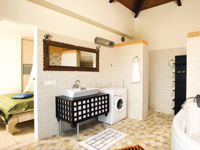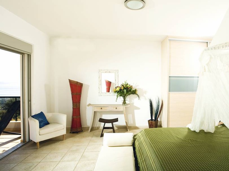 На втором этаже - две спальни (каждая со своей ванной комнатой) и балконы с панорамным видом на море и горы.