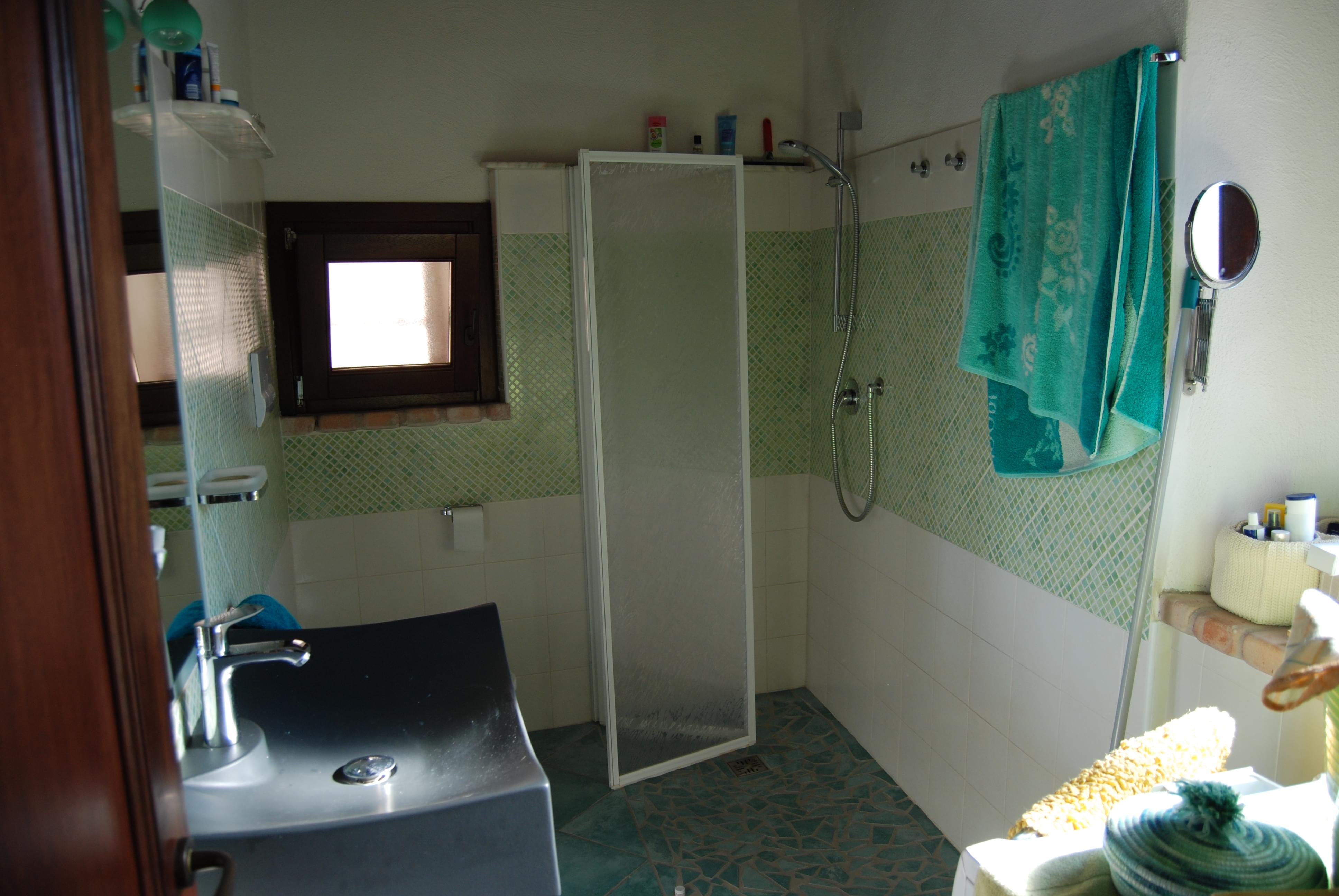 Im Obergeschoß befinden sich 2 Schlafzimmer mit Meerblick und eine kleine Terrasse mit Blick auf die Burgruine, das Meer und die angrenzenden Berge. Hier sind die Zimmerdecken im typisch sardischen Stil gehalten, d.h. Wachholderbalken und dazwischen Matten aus Schilfrohr. In beiden Zimmern konnten die alten Bodenfliesen erhalten werden. Ebenso wurde im ganzen Haus darauf verzichtet, die Wände zu begradigen, alles wurde neu verpuzt, aber die ursprüngliche fließende Bewegung der Wände blieb erhalten.Sanitär-und Elektroinstallationen sind komplett neu, ebenso wurden im ganzen Haus die Türen und Fenster ausgetauscht, es sind zum Teil Maßanfertigungen. Aus ästetischen Gründen wurden Echtholzfenster und Türen ausgewählt. Das Dach war undicht und wurde neu isoliert und eingedeckt. Alle Fenster haben fest eingebaute Insektengitter, die man wie Rollos hoch und runtermachen kann.Es gibt Satellitenfernsehen mit deutschen Sendern, einen Festnetztelefonanschluss für gutes Internet, der Kamin hat einen Ventilator, um auch bei schwieriger Wetterlage einen rußfreien Kamingenuss zu garantieren. Da die Wasserversorgung manchmal ausbleibt, wurde eine 500 l Zisterne eingebaut.Haus 'Ange' liegt mitten im historischen Teil von Posada, als Anlieger kann man mit dem Auto bis ans Haus fahren, für den Durchgangsverkehr ist dieser Teil gesperrt. Die nächste Parkmöglichkeit ist ca. 70m vom Haus entfernt. Ein Stück weiter gibt es einen Tante Emma Laden, der ganzjährig geöffnet hat. Im Ort gibt es Supermärkte, Tankstelle, Ärzte, Restaurants usw.