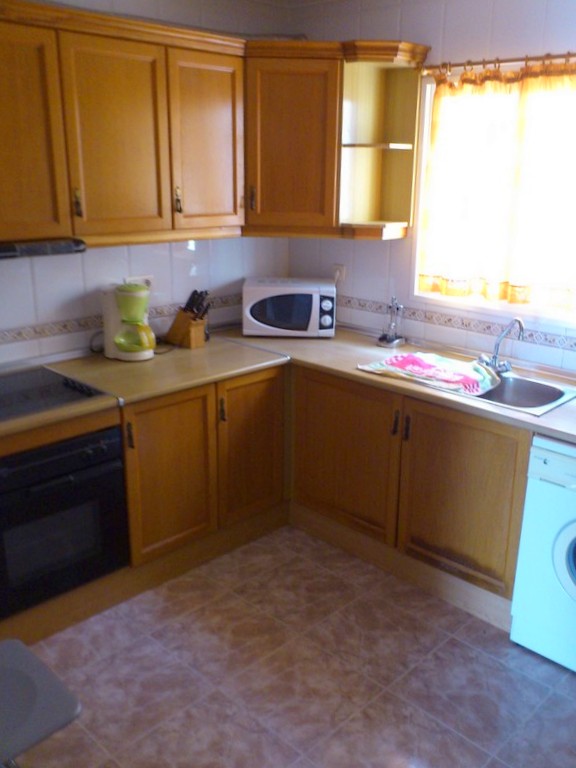 В доме на первом этаже: большая гостиная, полностью оборудованная кухня, туалет. Патио в прямой доступности к парку и бассейну.