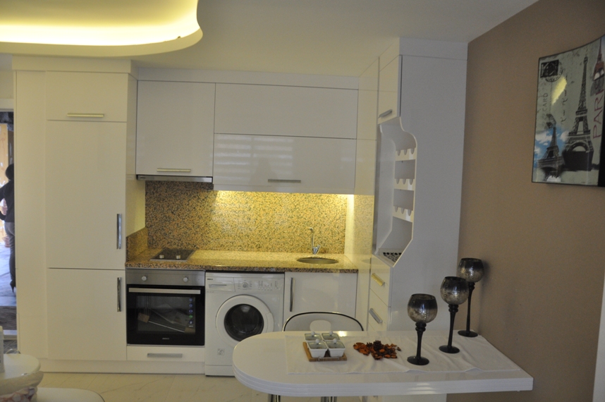 Новый жилой комплекс в стиле 5-ти звездочного отеля в самом сердце Алании. Расположен в шаговой доступности от различных магазинов, баров и ресторанов, аптек. Всего в 10 минутах ходьбы располагается знаменитый песчаный пляж Клеопатры. Комплекс состоит из двух блоков и предлагает квартиры студии, квартиры с одной спальней и пентхаусы с двумя спальнями. Квартиры полностью меблированы и оборудованы бытовой техникой. Комплекс имеет богатую инфраструктуру и включает: Большой плавательный бассейн с водными горками Бар у бассейна Закрытый бассейн с подогревом Турецкая баня Финская сауна Парная Массажные комнаты Фитнес-зал Боулинг Библиотека Кинотеатр Детская игровая комната, плейстейшн Лобби кафе Зимний сад Круглосуточная охрана