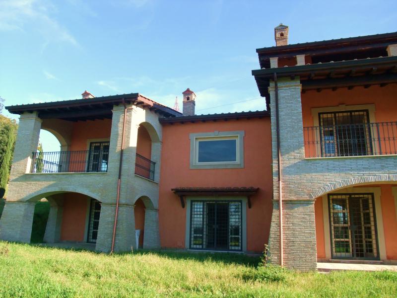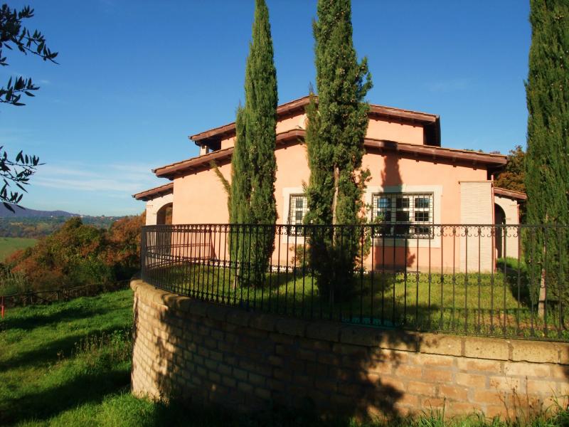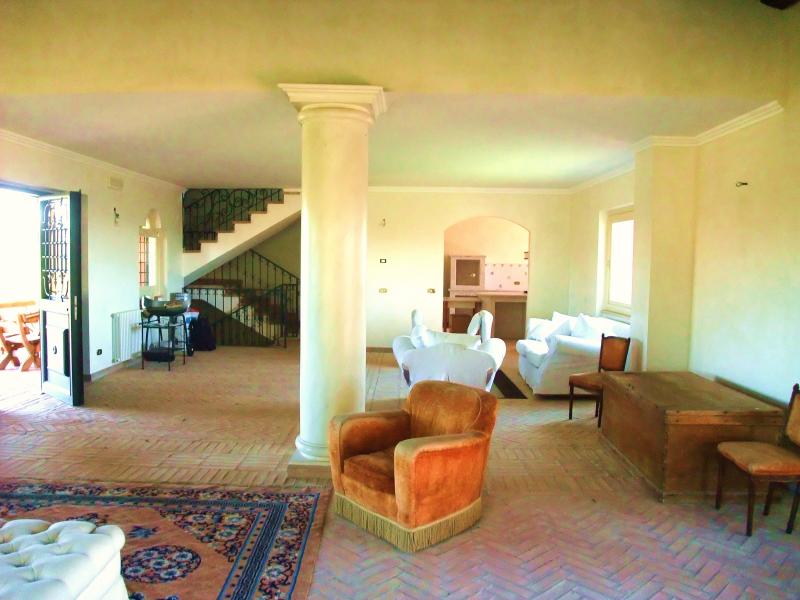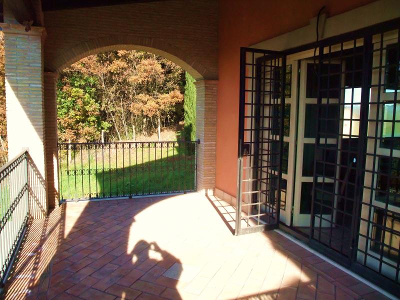 Rome, Via Flaminia. We offer for sale a prestigious recently restored villa situated on a hill with a breathtaking panoramic view. Surrounded with a parl of 2 hectares, few minutes away from the city centre and infrastructure. The premises of 500 sq.m. is decorated with wood ceiling beams and high-quality materials from the best handicraft industries of Tuscany. There are 5 bedrooms, 2 triple living rooms with fireplace, ample ready-to-use kitchen, spacious terraces and patios with panoramic views, 8 bathrooms and rooms for maintenance staff.