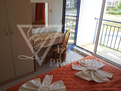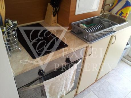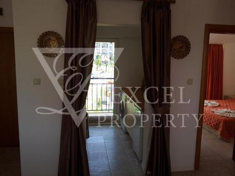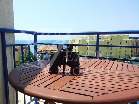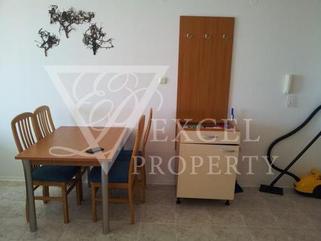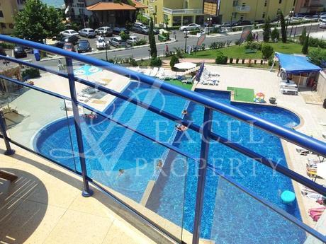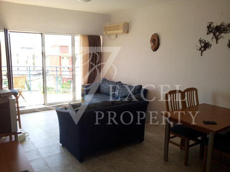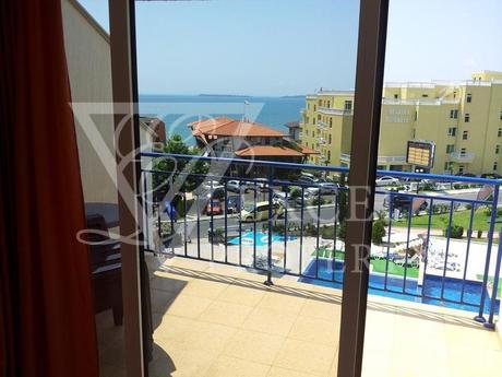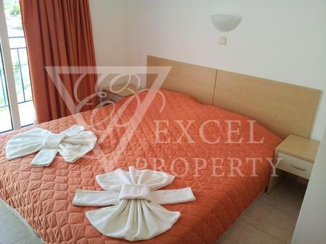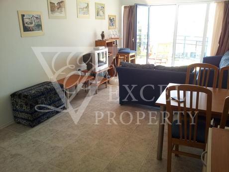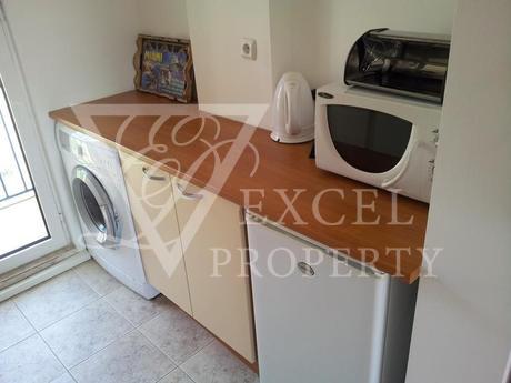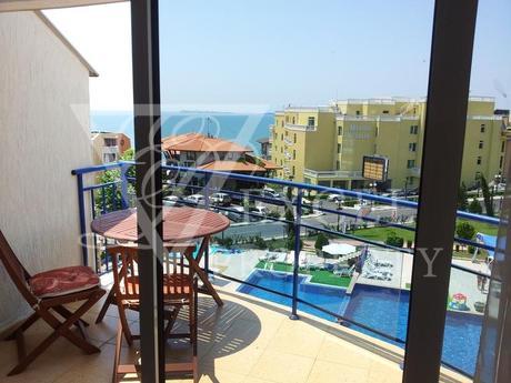 Excel Property offer a penthouse apartment on the fourth floor, with size of 87 m2 with spacious living room and separate kitchen, two bedrooms, two bathrooms and four balconies, two of which are with perfect sea and pool view and the other two are overlooking the forest. The price includes all furniture and electrical appliances, with kitchenette, a dining table with four chairs, a small bar with two high chairs, double sofa bed, armchair, small table and TV set in the living room. The bedroom is furnished with a large double bed, bedside tables, wardrobe, dressing table and chair. The second bedroom has two single beds, two night tables, dressing table and wardrobe. The price also includes electrical appliances in the kitchen - refrigerator, washing machine, oven, hot-plate, extractor, microwave, TV and air conditioning in the living room.