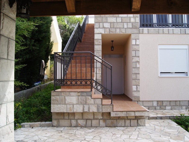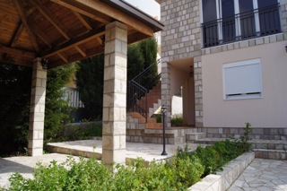 A two-level house in Utjeha for two families. 14 km off Bar. Only 600 meters to one of the best beaches of Montenegro. The house is ready for living. Both levels have an apartment with a separate entrance. Each apartment has a living room/kitchen, two bedrooms and two bathrooms. The roof leads to a big terrace with a beautiful view to the sea and the mountains. There is a wood and stone garden pavilion in the yard. A part of the front, the fence and the parking lot are paved with natural stone.