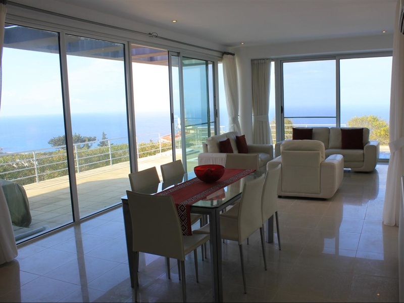 Contemporary 3 bedroom villa with fantastic panoramic views over the sea is nestled just 3 km away from Korineum golf club and few minutes drive to the beach.Exceptional location offering tranquility and privacy. On the first floor there are one bedr...
